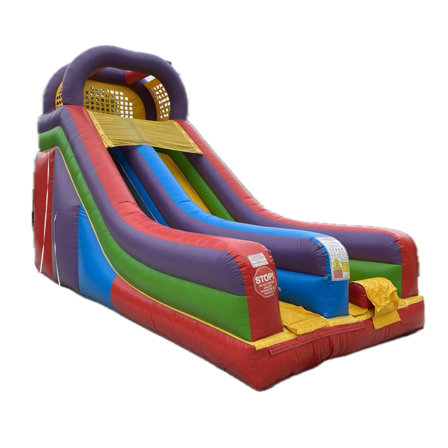 Are you ready to take your party or event to the next level? Look no further than our Wacky 18 Foot Dry Slide! This inflatable slide is the perfect addition to any gathering, providing hours of fun and excitement for kids and adults alike. With its vibrant colors and eye-catching design, the Wacky 18 Foot Dry Slide is sure to be the highlight of your event. Imagine the laughter and joy as your guests climb to the top and slide down this thrilling inflatable attraction. It's an experience they won't soon forget. Our 18 foot dry slide is designed with safety in mind. It features high side walls and safety netting to ensure a secure sliding experience. Plus, our professional team will set up and take down the slide, giving you peace of mind and allowing you to focus on enjoying the event.