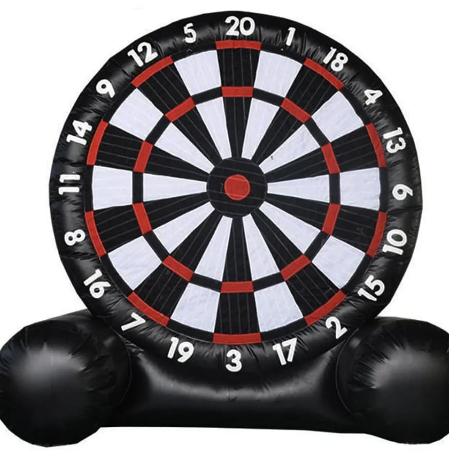 Kick a velcro soccer ball or shoot soft tip arrows at this massive dart board to win the game. Great for backyard parties or big events.