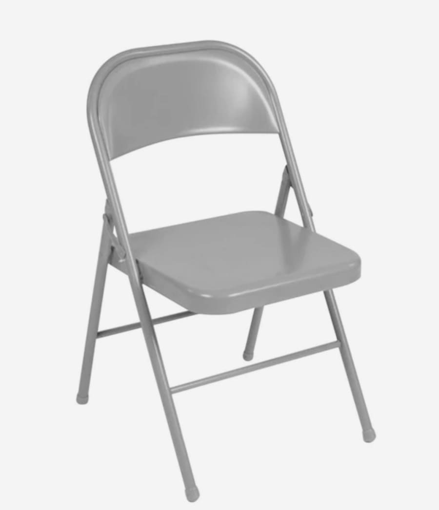 Check out these folding grey metal chairs which are great for birthday parties, graduations, or any other event. Up to 48 available for rent.
